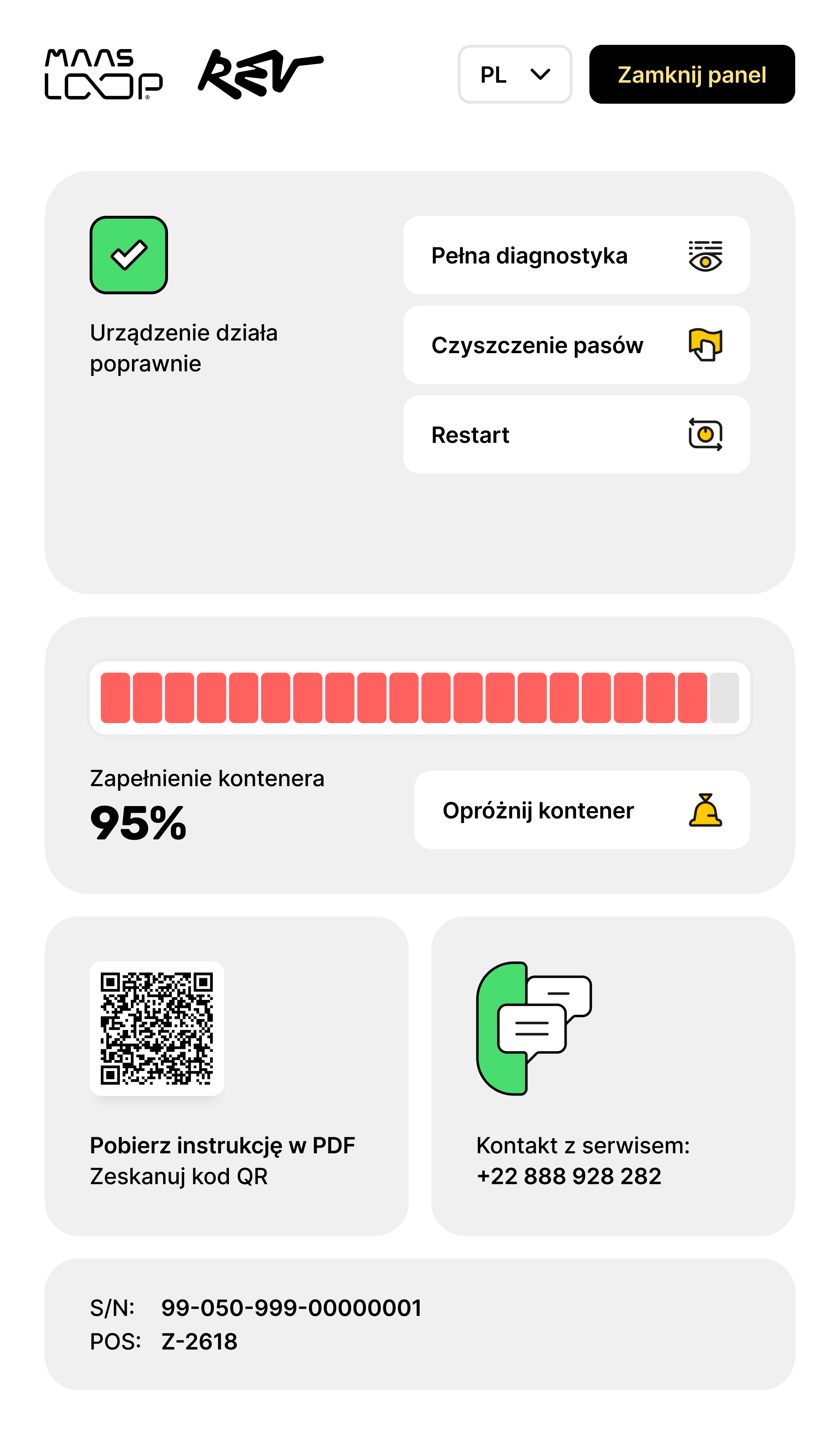 Konserwacja, czyszczenie i obsługa bieżąca urządzenia Rev Loop
