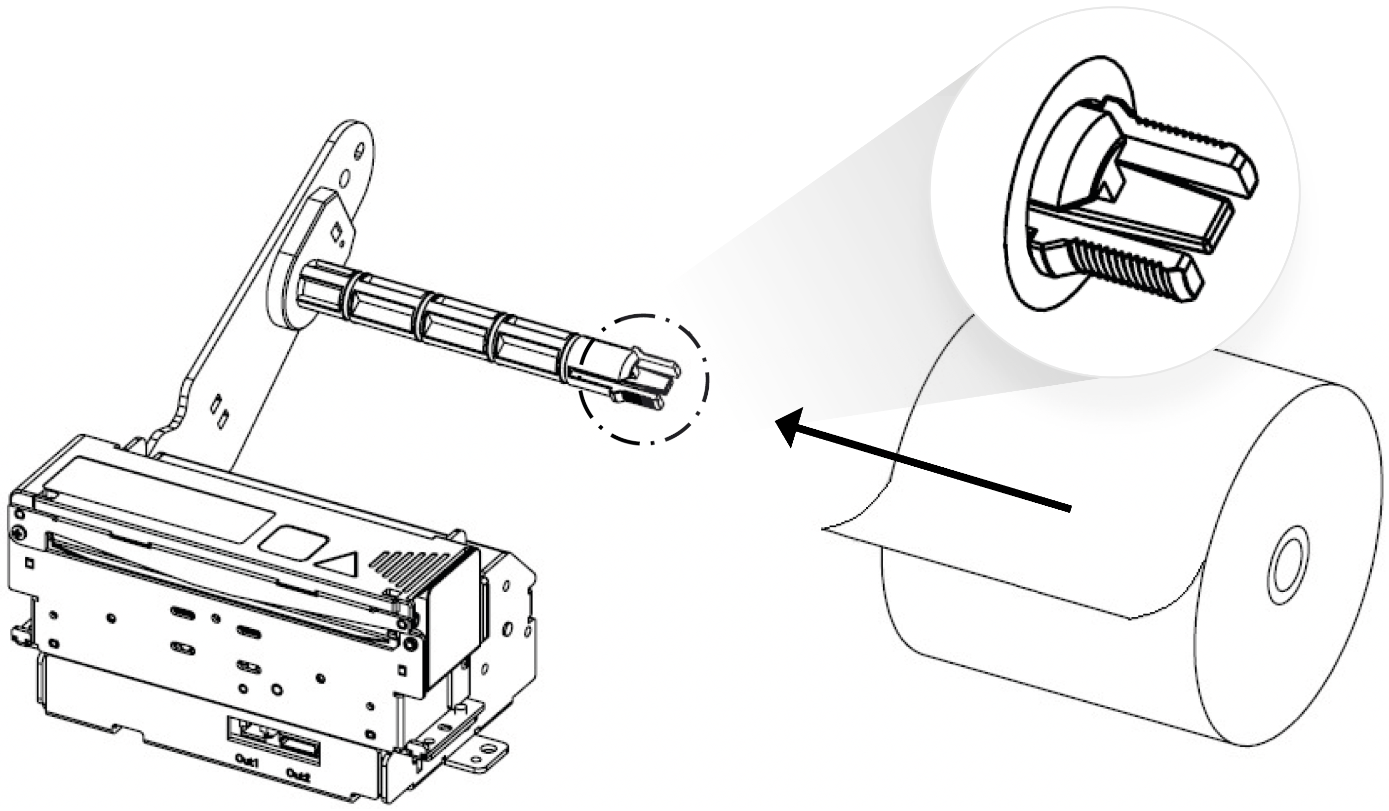 Papier zostanie automatycznie przepuszczony przez głowicę, gdy czujnik braku papieru wykryje nową rolkę.
