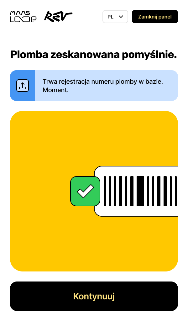 Plomba została zeskanowana pomyślnie i fakt wymiany worka został odnotowany w systemie operatora.